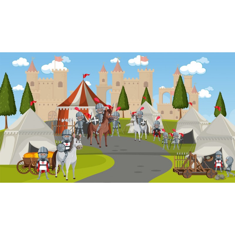 Autocollant chateau fort village à coller dans une chambre ou sur une voiture.