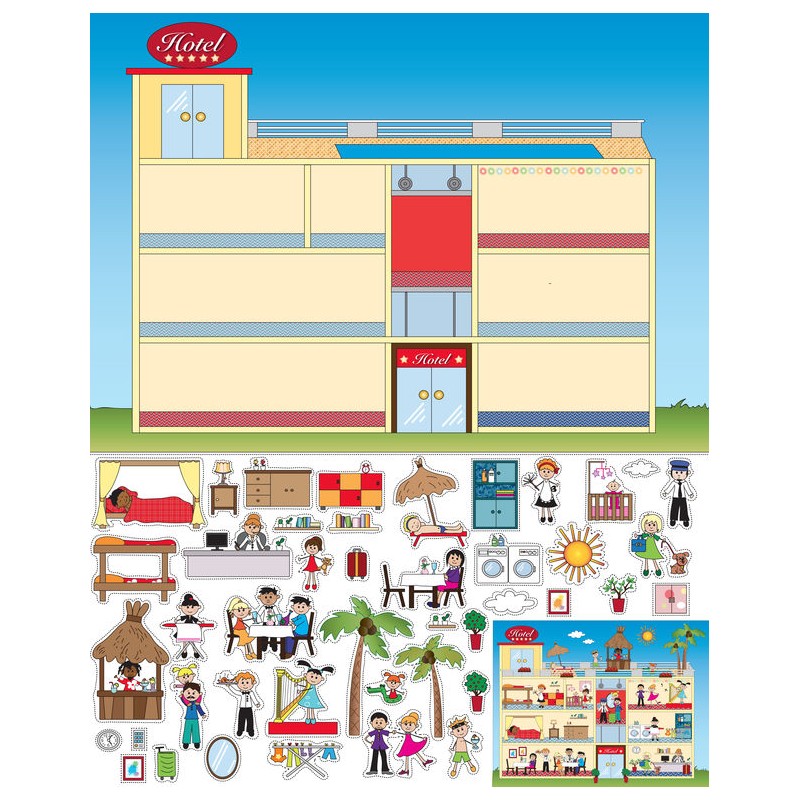 Autocollant maison de poupee hotel à coller dans une chambre ou sur une voiture.