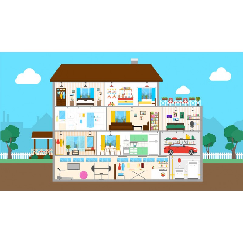 Autocollant maison poupee ciel bleu à coller dans une chambre ou sur une voiture.