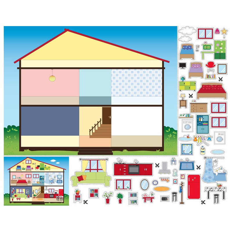 Autocollant maison poupee enfant à coller dans une chambre ou sur une voiture.