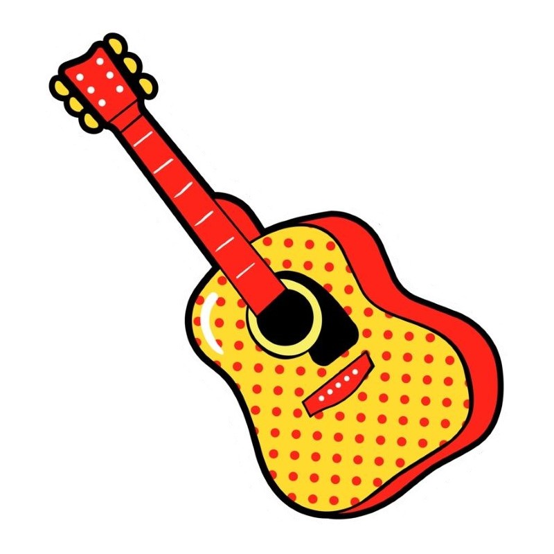 Sticker autocollant guitare seche dans le theme de l'espagne. Adhesif prédécoupé à la forme du visuel, à coller sur surfaces lisses comme les murs, métal, vitre, plastique, etc.