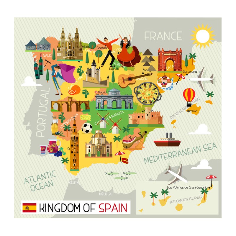 Sticker autocollant ile dans le theme de l'espagne. Adhesif prédécoupé à la...