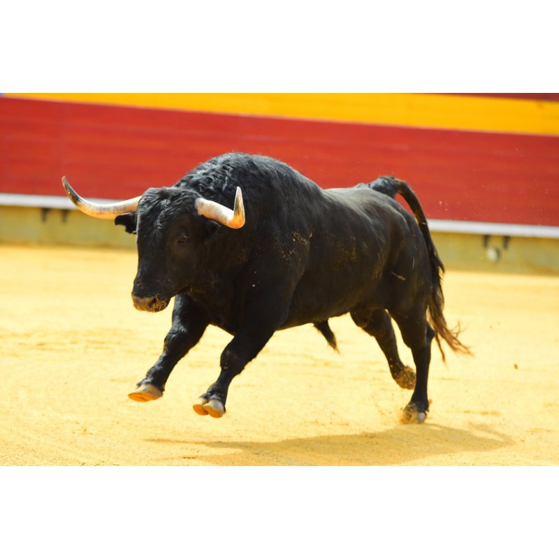 Sticker autocollant taureau en piste dans le theme de l'espagne. Adhesif prédécoupé à la forme du visuel, à coller sur surfaces lisses comme les murs, métal, vitre, plastique, etc.