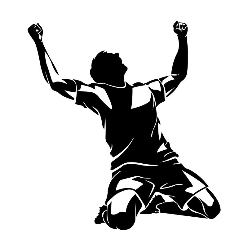 Sticker autocollant attanquant marque but dans le theme du football découpé selon le contour du dessin à coller sur surface lisse et propre (plastique, métal, vitre, etc)