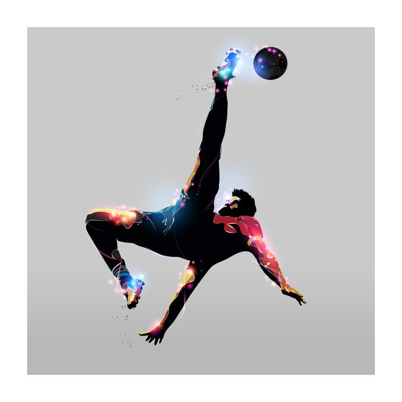 Sticker autocollant footballeur reprise dynamique dans le theme du football découpé selon le contour du dessin à coller sur surface lisse et propre (plastique, métal, vitre, etc)