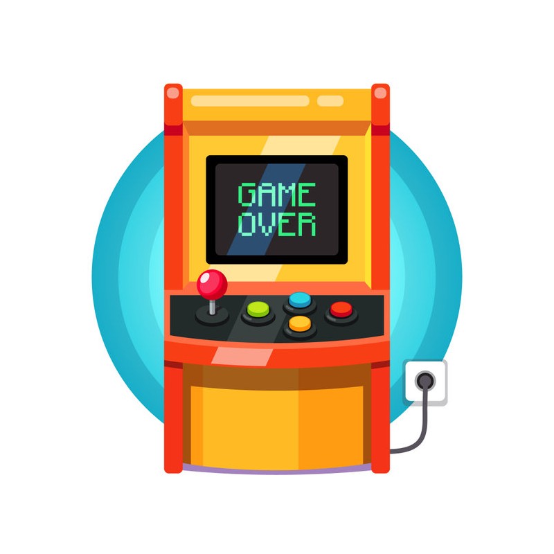 Sticker autocollant arcade machine a sous dans le theme jeux video. Adhesif...