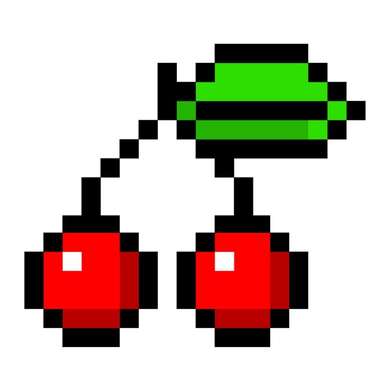 Sticker autocollant cerise pixels dans le theme jeux video. Adhesif découpé suivant le dessin pour coller sur surface lisse et propre (plastique, métal, vitre, etc)