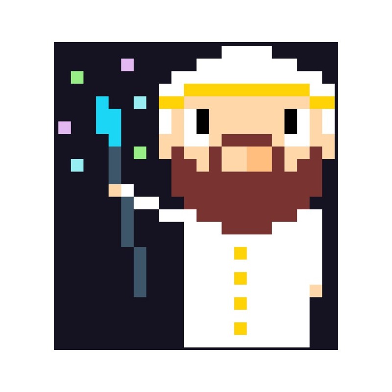 Sticker autocollant personnage pixels magicien dans le theme jeux video. Adhesif découpé suivant le dessin pour coller sur surface lisse et propre (plastique, métal, vitre, etc)