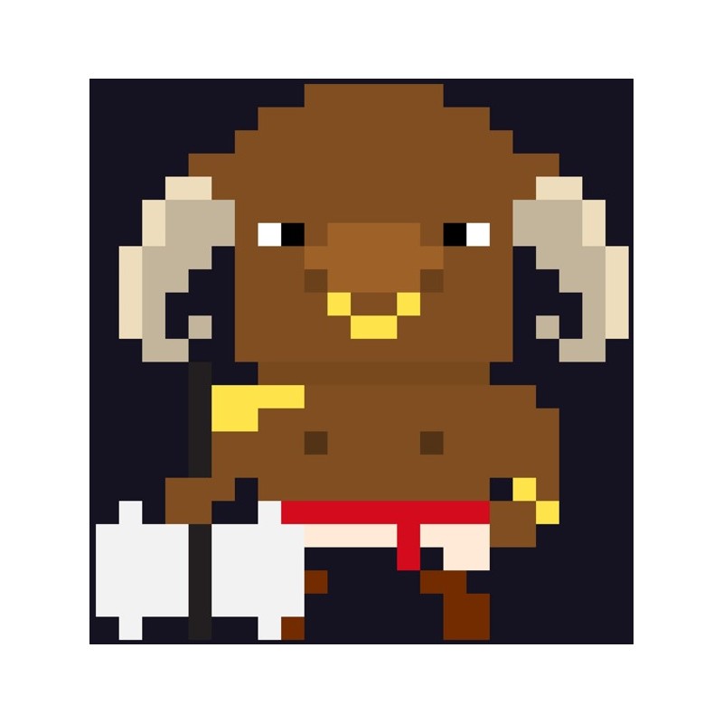 Sticker autocollant personnage pixels taureau dans le theme jeux video. Adhesif découpé suivant le dessin pour coller sur surface lisse et propre (plastique, métal, vitre, etc)