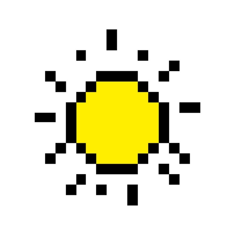 Sticker autocollant soleil pixels dans le theme jeux video. Adhesif découpé suivant le dessin pour coller sur surface lisse et propre (plastique, métal, vitre, etc)