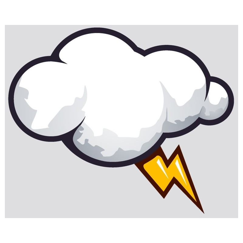 Sticker autocollant nuage avec eclair dans le theme graffiti. Adhesif mural prédécoupé suivant le contour du visuel à coller sur surface lisse et propre (plastique, métal, vitre, etc)