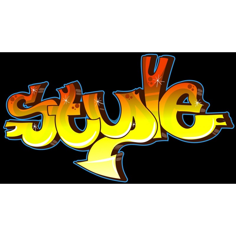 Sticker autocollant style jaune graff dans le theme graffiti. Adhesif mural prédécoupé suivant le contour du visuel à coller sur surface lisse et propre (plastique, métal, vitre, etc)