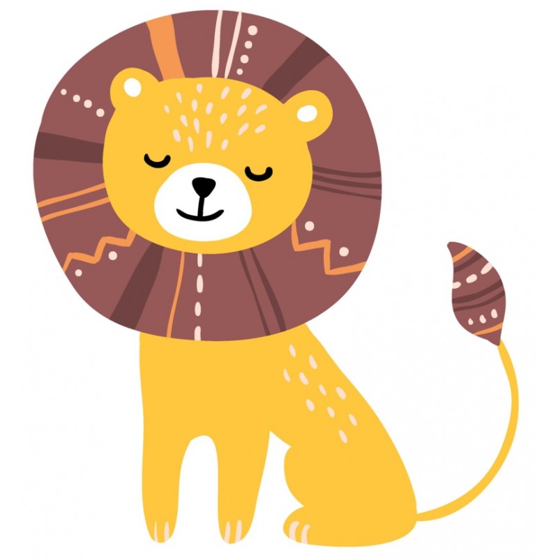 Sticker autocollant lion de la savanne theme indien pour la décoration murale de chambre de votre garçon / fille, adhesif pour sur surfaces lisses propres (vitre, porte, cahier, etc).