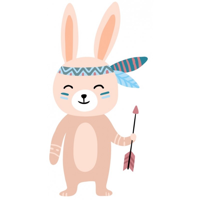 Sticker autocollant lapin deguise en indien theme indien pour la décoration murale de chambre de votre garçon / fille, adhesif pour sur surfaces lisses propres (vitre, porte, cahier, etc).