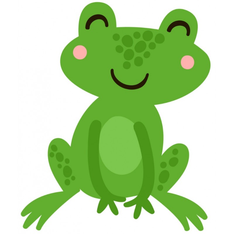Sticker autocollant grenouille happy dans le theme des insectes découpé à la forme du visuel pour la déco de chambre à coller sur toutes surfaces lisses et propres (plastique, métal, vitre, etc).