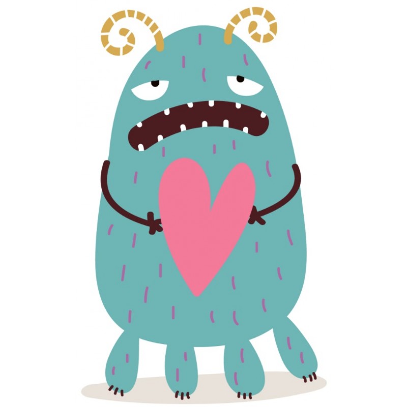Sticker autocollant monstre avec coeur thematique des montres pour la déco interieur comme la chambre, adhesif à coller sur surfaces lisses propres (métal, vitre, porte, etc).