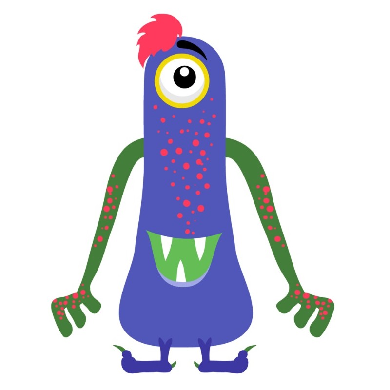 Sticker autocollant monstre trois doigts thematique des montres pour la déco...