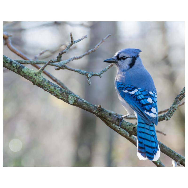 Sticker autocollant geai bleu sur branche dans le theme des oiseaux. Prédécoupé à la forme du visuel, à coller sur toutes surfaces lisses comme les murs, métal, vitre, plastique, etc.