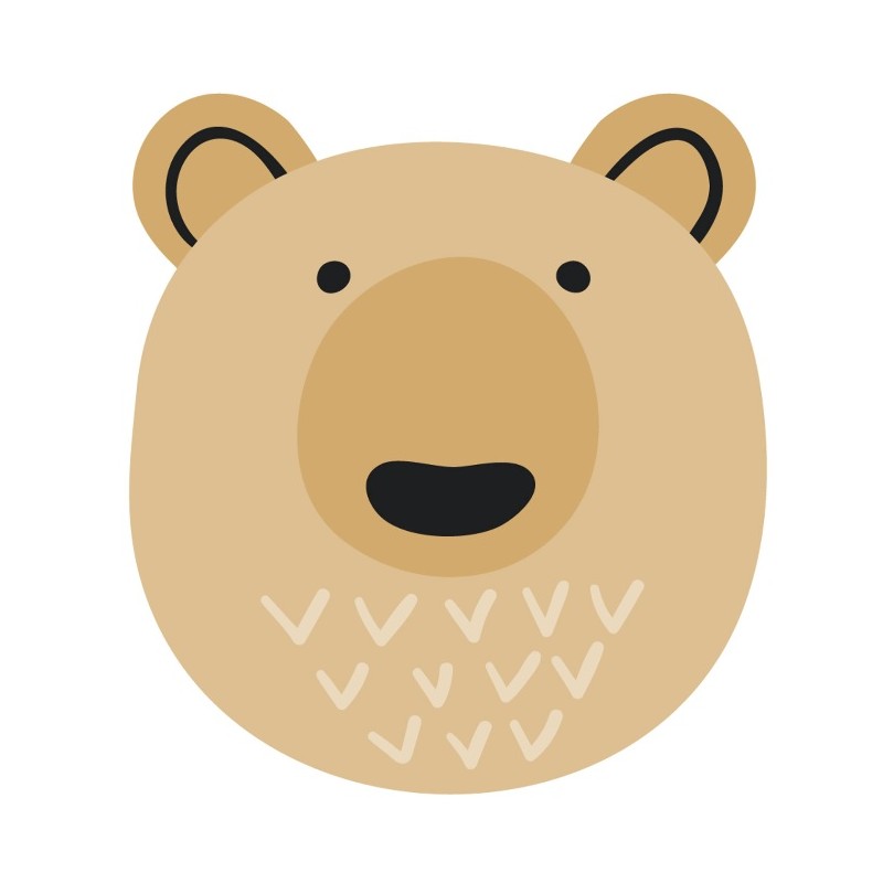 Sticker autocollant tete d'ourson brun dans le theme des ourson prédécoupé selon contour du visuel pour la décoration d'une chambre. Colle sur toutes surfaces (plastique, métal, vitre, etc).