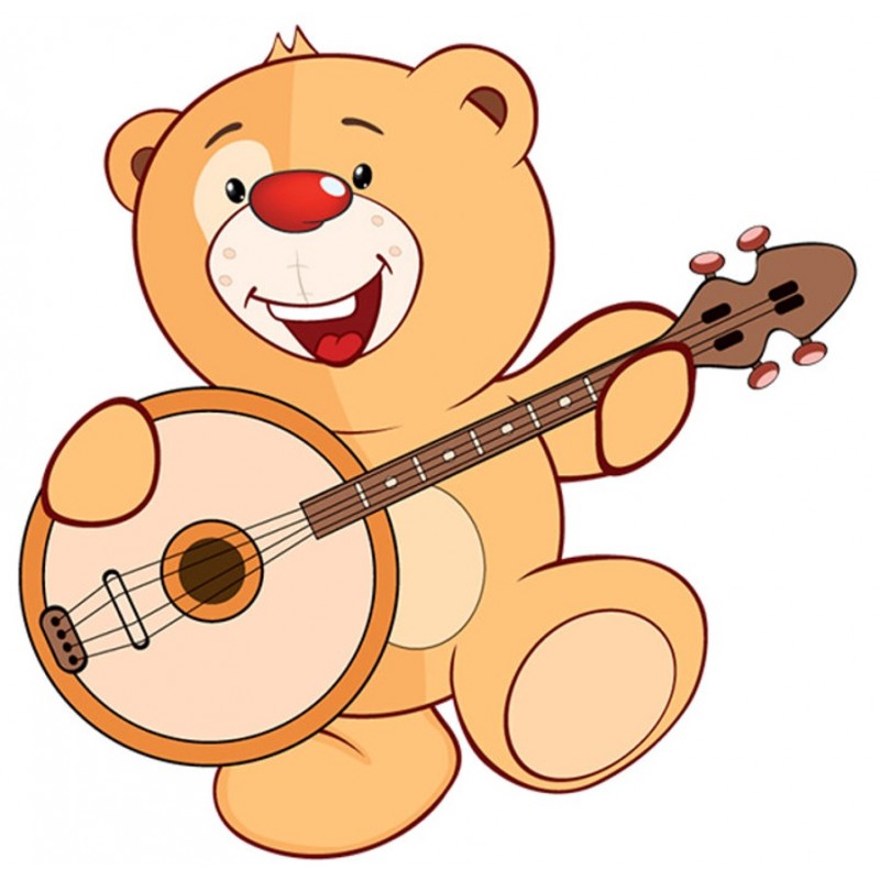 Sticker autocollant ours guitare dans le theme des ourson prédécoupé selon contour du visuel pour la décoration d'une chambre. Colle sur toutes surfaces (plastique, métal, vitre, etc).