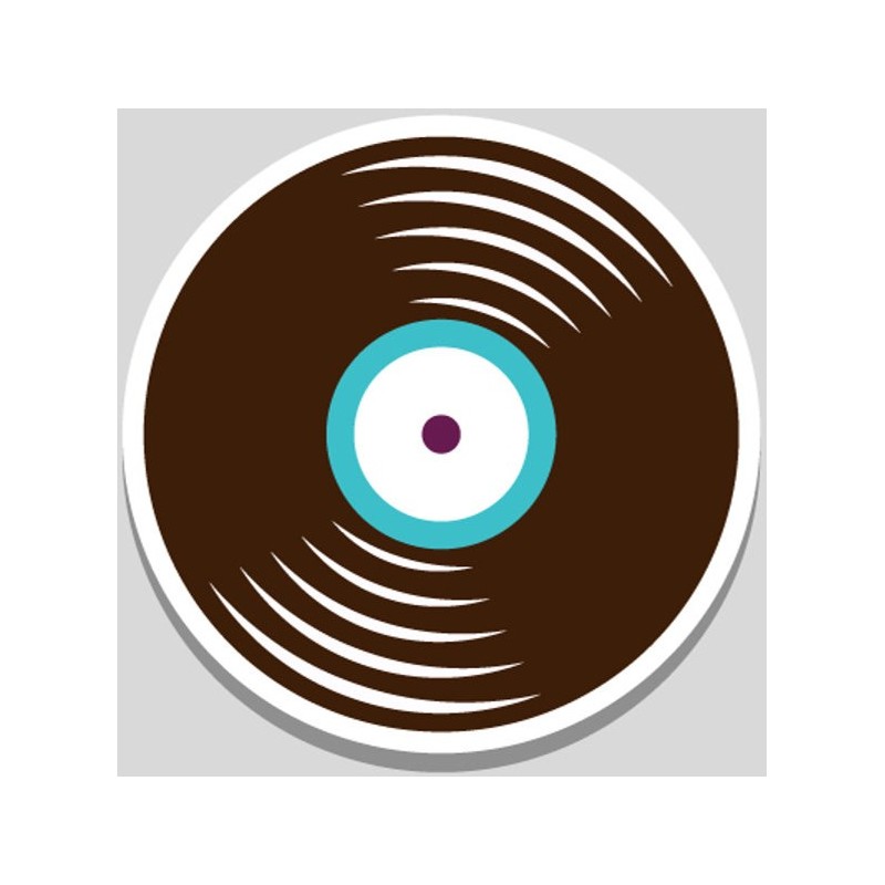 Sticker autocollant disque musique dans le theme peace and love. Adhesif prédécoupé à la forme du dessin, à coller sur surfaces lisses comme les murs, métal, vitre, plastique, etc.