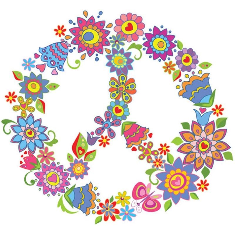Sticker autocollant peace fleurs dans le theme peace and love. Adhesif prédécoupé à la forme du dessin, à coller sur surfaces lisses comme les murs, métal, vitre, plastique, etc.