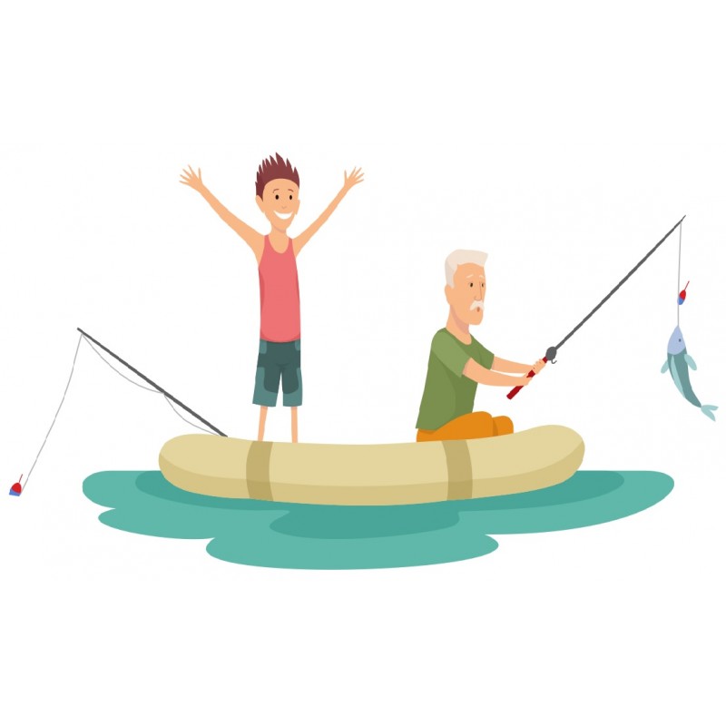 Sticker muraux pecheur bateau gonflable à coller dans une chambre ou sur une...