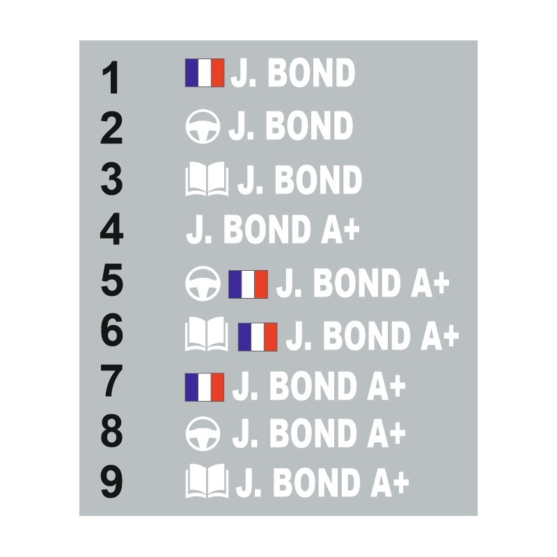 Sticker nom pilote Drapeau France + NOM (voiture).