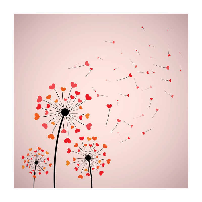 Stickers autocollants mural pissenlit coeur à coller dans une chambre ou sur une voiture.