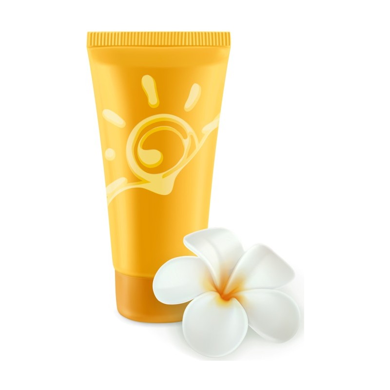 Sticker autocollant pot de creme solaire dans le theme de la plage, prédécoupé à la forme du visuel, pouvant être collé sur toutes surfaces lisses propres comme les murs, métal, vitre, plastique, etc.