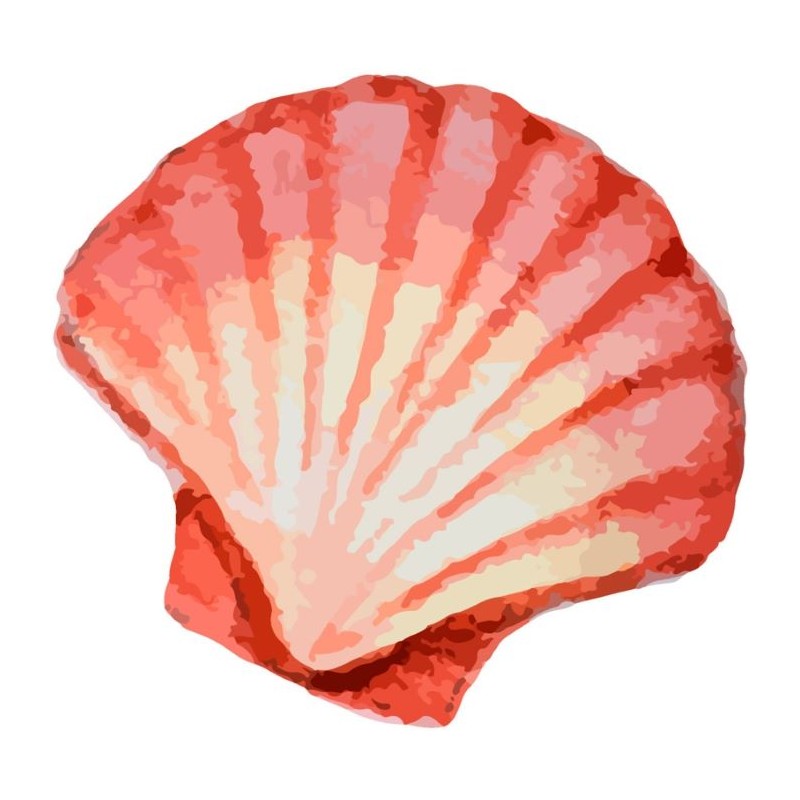 Sticker autocollant saint jacques rouge dans le theme de la plage, prédécoupé à la forme du visuel, pouvant être collé sur toutes surfaces lisses propres comme les murs, métal, vitre, plastique, etc.