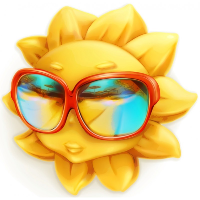 Sticker autocollant soleil dynamique dans le theme de la plage, prédécoupé à la forme du visuel, pouvant être collé sur toutes surfaces lisses propres comme les murs, métal, vitre, plastique, etc.