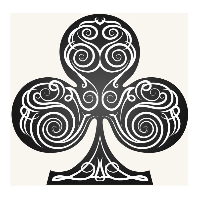 Sticker autocollant trefle noir et blanc dans le theme du poker. Stick...