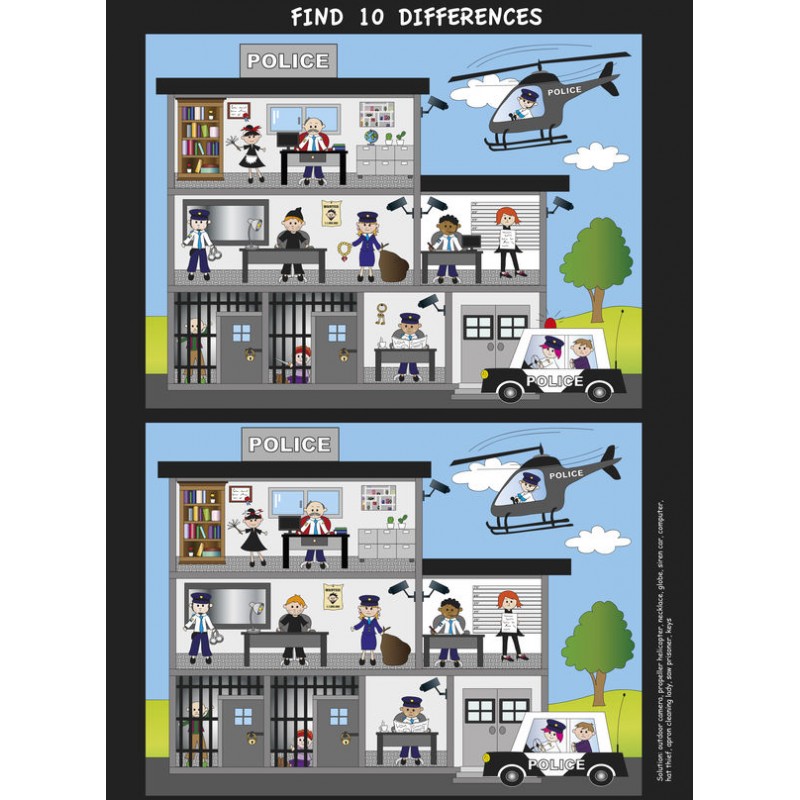 Autocollant 10 differences police à coller dans une chambre ou sur une voiture.