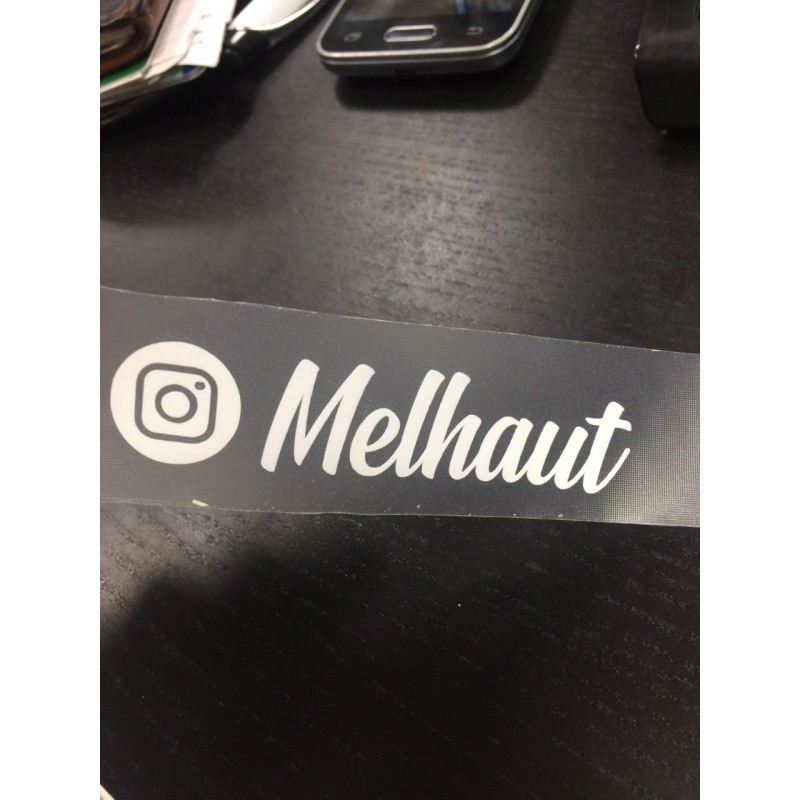 Autocollant Instagram + votre nom en coloris blanc à coller sur la vitrine de...