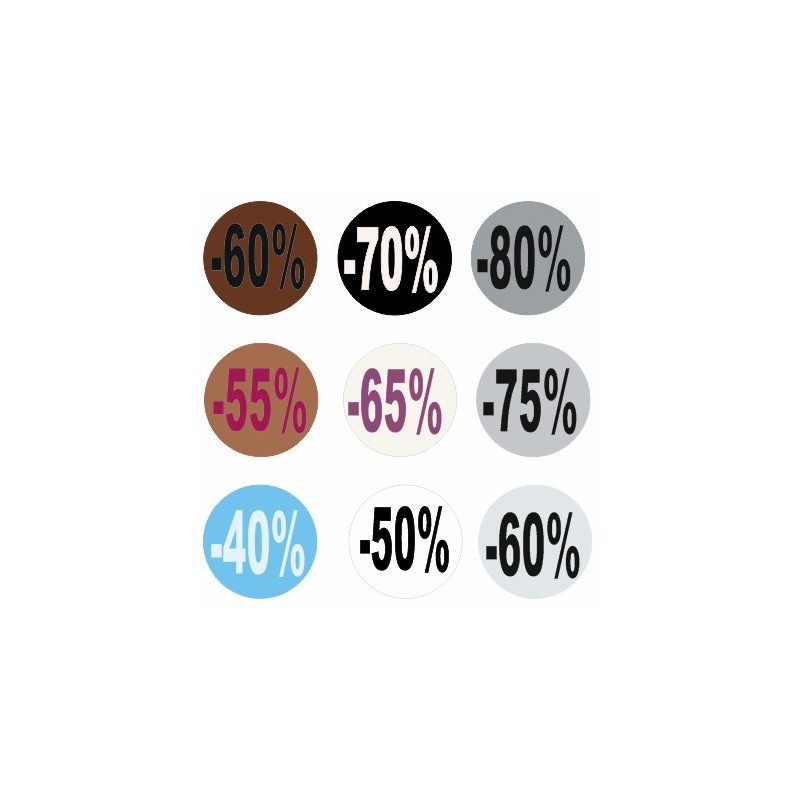 Gomettes autocollantes pour SOLDES et PROMOTIONS.Diamètre de 1 cm à 40 cm à...