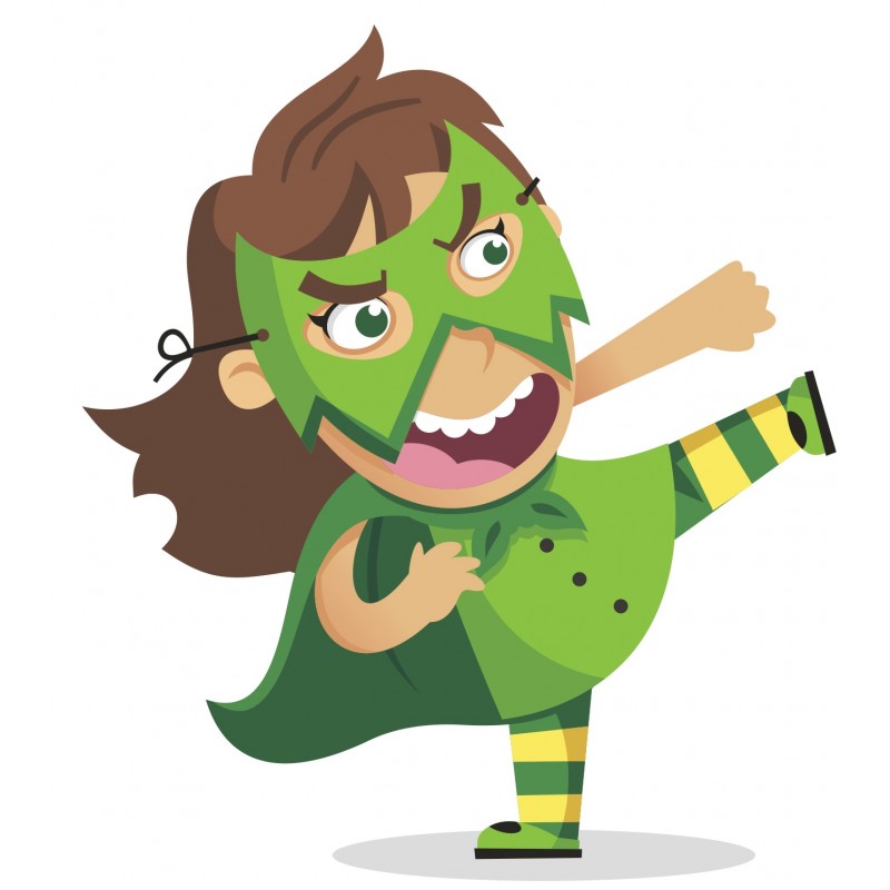 Sticker Super héro enfant fille vert coup pied Agrandir l'image