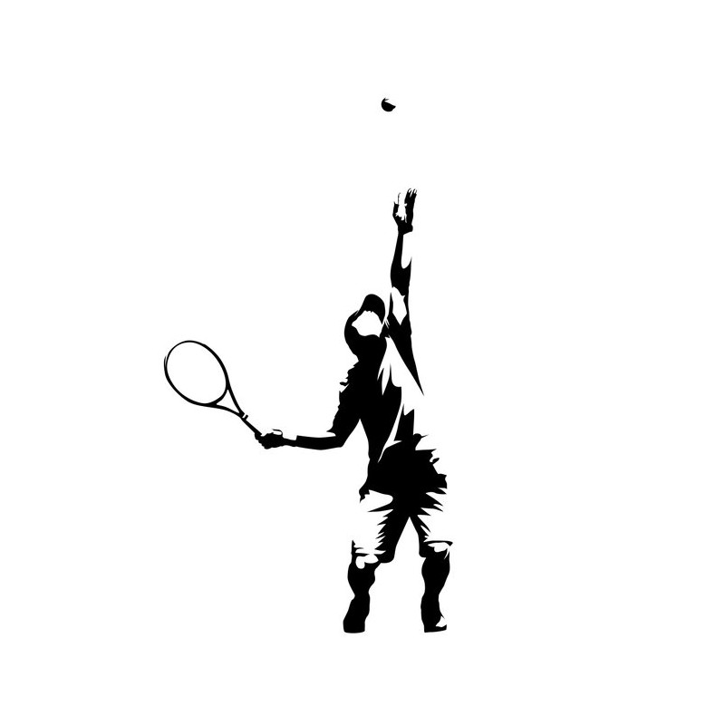 Sticker autocollant tennisman engage dans le theme du tennis, prédécoupé à la forme du visuel, pouvant être collé sur toutes surfaces lisses propres comme les murs, métal, vitre, plastique, etc.