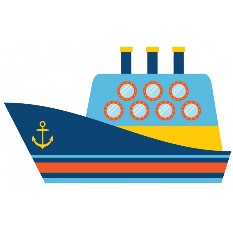 Sticker autocollant bateau croisiere theme transport et voitures pour déco mur de chambre petit garçon ou d'une fille, a coller sur surfaces lisses propres (fenetre, porte, cahier, etc).