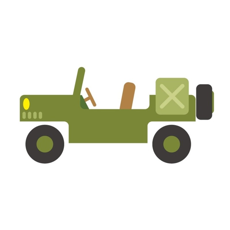 Sticker autocollant jeep militaire theme transport et voitures pour déco mur de chambre petit garçon ou d'une fille, a coller sur surfaces lisses propres (fenetre, porte, cahier, etc).