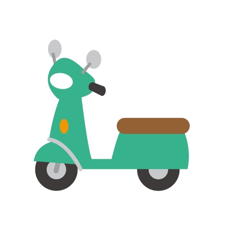Sticker autocollant scooter vert menthe theme transport et voitures pour déco mur de chambre petit garçon ou d'une fille, a coller sur surfaces lisses propres (fenetre, porte, cahier, etc).