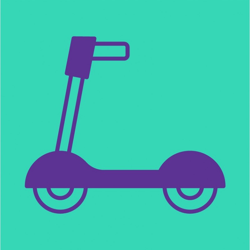 Autocollant trottinette turquoise violet à coller dans une chambre ou sur une voiture.